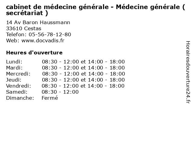 | Lundi | 08:30-12:00 et 14:00-18:00 |