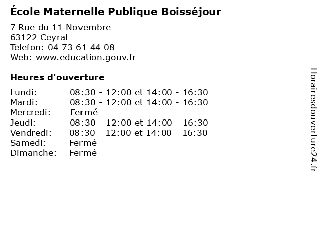 | Mardi | 08:30-12:00 et 14:00-16:30 |