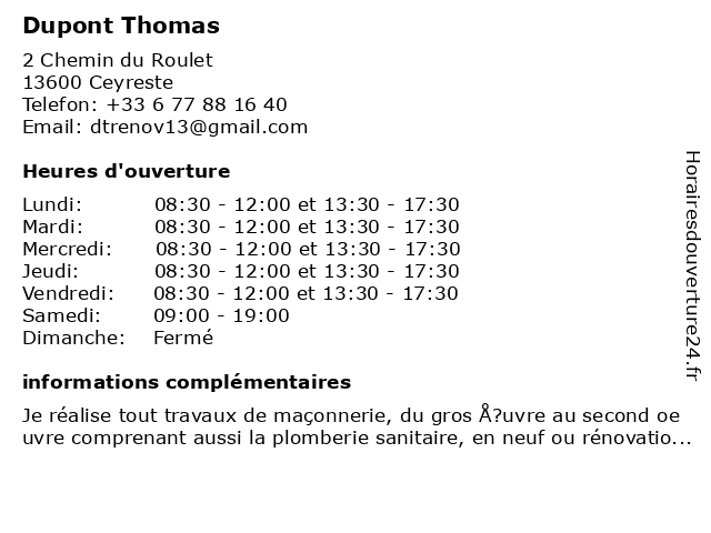 Lundi | 08:30-12:00 et 13:30-17:30 |