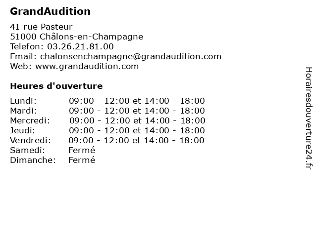 1 Audika - Audioprothésiste Chalons-en-Champagne (Distance: 0,65 km) 42 Rue de la Marne, 51000 Châlons-en-Champagne appareil auditif, audika, audiologiste, audioprothésiste, centre auditif, chalons, champagne, en, spécialiste audition 2 Audition du Mau (Distance: 0,67 km) 14 Quai Eugène Perrier, 51000 Châlons-en-Champagne appareil, audioprothésiste, audition, du, mau, test 3 Audition du Mau (Distance: 27,14 km) 37 Rue de Châlons, 51130 Vertus appareil, audioprothésiste, audition, du, mau, test 4 Audika - Audioprothésiste Vitry-le-François (Distance: 30,23 km) 43 Rue Aristide Briand, 51300 Vitry-le-François appareil auditif, audika, audiologiste, audioprothésiste, centre auditif, françois, le, spécialiste audition, vitry 5 GrandAudition (Distance: 31,79 km) 11 rue Porte Lucas, 51200 Epernay accessoires, appareil, audioprothésiste, audition, grandaudition, test 6 GrandAudition (Distance: 39,32 km) 2 Rue Jules Méline, 51430 Bezannes accessoires, appareil, audioprothésiste, audition, grandaudition, test |
