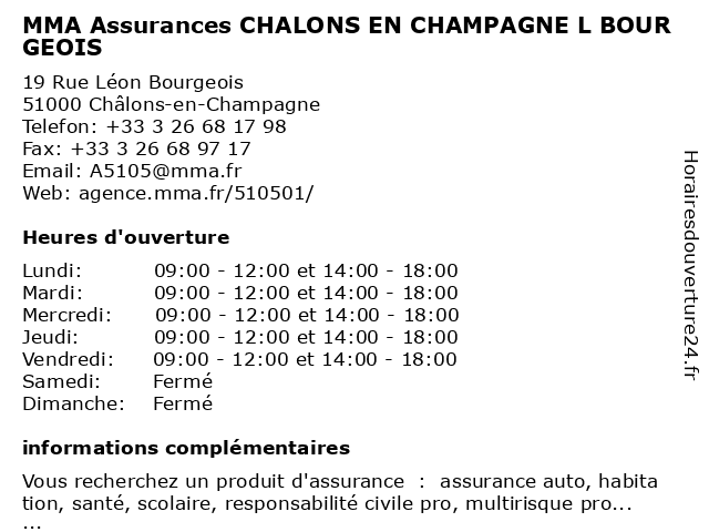 1 MMA CHALONS EN CHAMPAGNE L BOURGEOIS (Distance: 0,01 km) 19 Rue Léon Bourgeois, 51000 Châlons-en-Champagne bourgeois, chalons, champagne, en, mma 2 SADEC AKELYS CHALONS EN CHAMPAGNE (Distance: 0,21 km) 61 Rue Léon Bourgeois, 51000 Châlons-en-Champagne akelys, chalons, champagne, en, sadec 3 MMA Assurances CHALONS EN CHAMPAGNE LES HALLES (Distance: 0,25 km) 6 Rue des Fripiers, 51000 Châlons-en-Champagne assurance au tiers, assurance auto, assurance auto au tiers, assurance auto pas cher, assurance auto tous risques, assurance habitation, assurance habitation pas cher, assurance local, assurance multirisque, assurance professionnelle, assurance santé, assurance tous risques, assurance voiture, assurances, chalons, champagne, en, flotte, garantie décennale, halles, les, mma, mutuelle, mutuelle sénior, rc pro, responsabilité civile 4 Parking Indigo Chalons-En-Champagne Parking Viviers (Distance: 0,29 km) 1 Rue Des Viviers, 51000 Châlons-en-Champagne borne de recharge pour véhicules électriques, chalons, champagne, en, indigo, parking, viviers 5 Agence immobilière Laforêt Chalons-En-Champagne (Distance: 0,36 km) 11-13 Rue de la Marne, 51000 Châlons-en-Champagne acheter, acheter appartement, acheter maison, agence, agence immobilière, agent immobilier, chalons, champagne, en, gestion locative, immobilière, laforêt, location, location appartement, location maison, transaction, vendre appartement, vendre maison 6 Nicolas Chalons en Champagne (Distance: 0,39 km) 41 Place de la République, 51000 Châlons-en-Champagne chalons, champagne, champagnes, cidre, en, nicolas, rhums, rosé, ruinart, spiritueux, vins, vins blancs, vins rouges, whiskies |