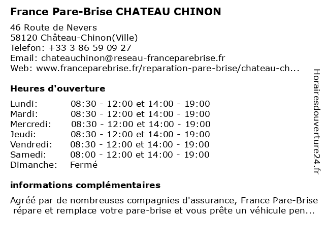 Termes de recherche pour France Pare-Brise CHATEAU CHINON:chateau, chinon, france, pare, brise, pare-brise, réparation pare-brise, changement pare-brise, remplacement pare-brise, lunette arrière, fissure pare-brise, glace latérale, impact pare-brise, vitre latérale, vitre voiture |