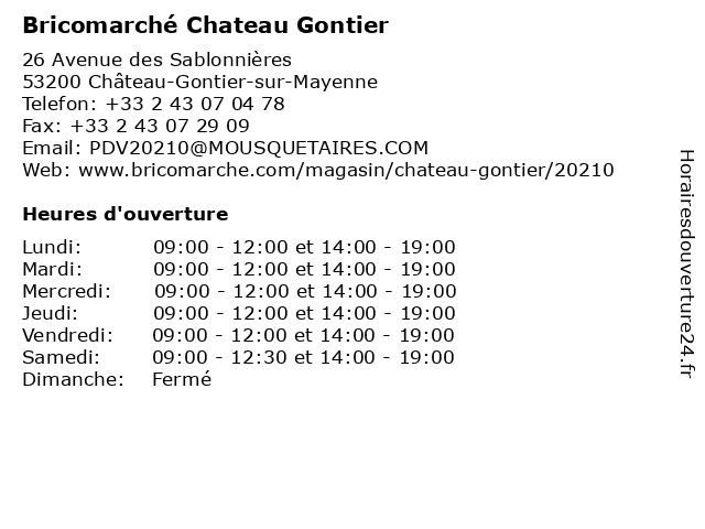 | Samedi | 09:00-12:30 et 14:00-19:00 |