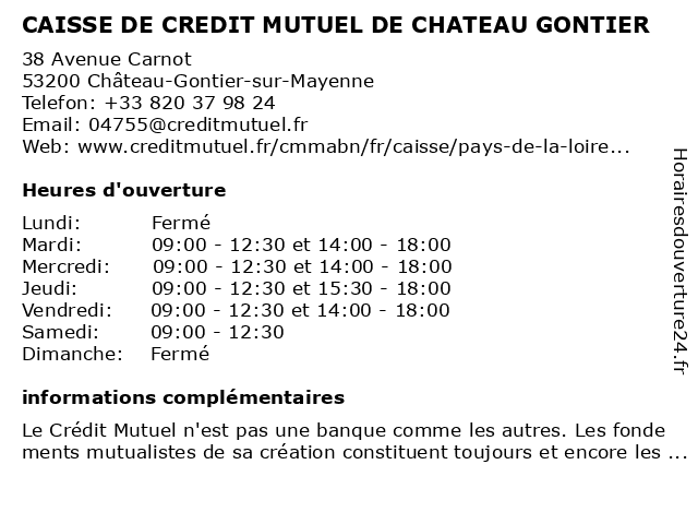 Termes de recherche pour CAISSE DE CREDIT MUTUEL DE CHATEAU GONTIER:de, chateau, crédit, mutuel, caisse, gontier |