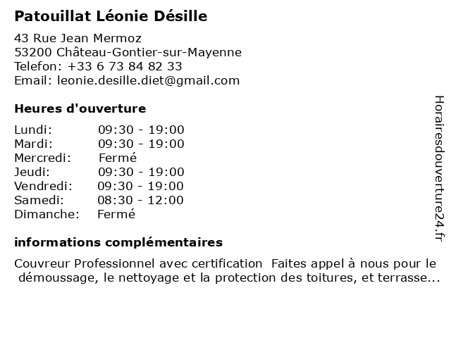 | Mercredi | Fermé |