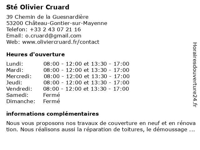 Termes de recherche pour Sté Olivier Cruard:ste, olivier, cruard |