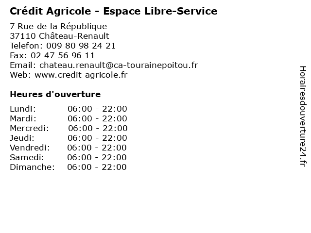 1 Crédit Agricole - Espace Libre-Service (Distance: 14,58 km) - La Croix Poëllon, 37380 Monnaie agence, agricole, assurance, bancaire, banque, crédit, espace, libre, service 2 Crédit Agricole - Espace Libre-Service (Distance: 19,29 km) 3 Avenue du Centre, 37530 Nazelles-Negron agence, agricole, assurance, bancaire, banque, crédit, espace, libre, service 3 Credit Agricole Château-Renault (Distance: 0,04 km) 7 Rue de la République, 37110 Château-Renault agricole, château, credit, renault 4 Crédit Agricole Val de France (Distance: 13,16 km) 8 Avenue du Président Grellet, 41310 Saint-Amand Longpré agence, agricole, assurance, bancaire, banque, crédit, de, france, val 5 Credit Agricole Monnaie (Distance: 14,57 km) La Croix Poellon, 37380 Monnaie agricole, credit, monnaie 6 Crédit Agricole Val de France (Distance: 16,80 km) 2 Place de l'Hôtel de Ville, 41190 Herbault agence, agricole, assurance, bancaire, banque, crédit, de, france, val |