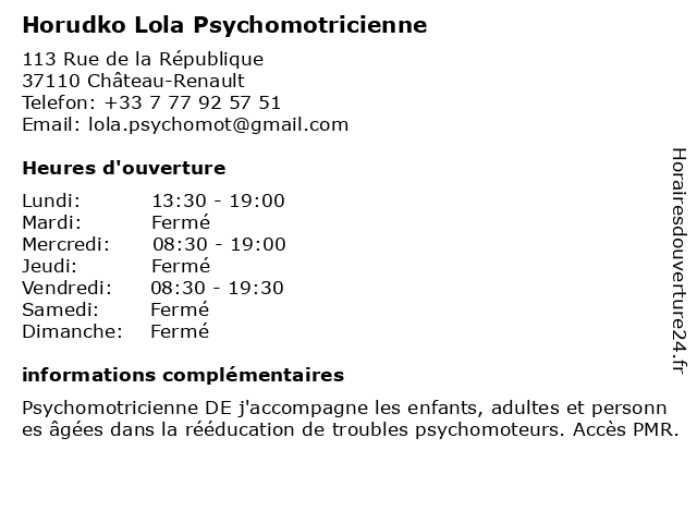 Termes de recherche pour Horudko Lola Psychomotricienne:lola, psychomotricienne, horudko |