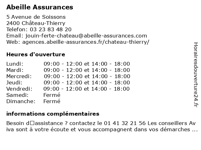 1 Generali Assurances (Distance: 0,13 km) 4 Rue Saint-Crépin, 02400 Chateau Thierry assurances, generali, services 2 Matmut Assurances (Distance: 0,27 km) 2 Rue Du Général De Gaulle, 02400 Château-Thierry agence d'assurance de biens, assurances, expert en sinistres, matmut, organisme d'assurance animaux de compagnie, organisme d'assurance auto, organisme d'assurance bateau, organisme d'assurance moto, organisme d'assurance-habitation, organisme d'assurance-vie, service d'assurance professionnelle 3 MAAF Assurances CHATEAU THIERRY (Distance: 0,32 km) 2 Rue Carnot, 02400 Château-Thierry assurance, assurance auto, assurance habitation, assurance moto, assurance prêt immobilier, assurances, chateau, crédit auto, maaf, mutuelle, mutuelle santé, thierry 4 Areas Assurances (Distance: 0,57 km) 4 Place Aristide Briand, 02400 Château-Thierry areas, assurances, santé, services 5 GAN ASSURANCES CHATEAU THIERRY (Distance: 0,63 km) 50 Avenue d'Essômes, 02400 Château-Thierry assurances, chateau, gan, thierry 6 MMA Assurances CHATEAU THIERRY (Distance: 0,70 km) 5 Avenue de Montmirail, 02400 Château-Thierry assurance au tiers, assurance auto, assurance auto au tiers, assurance auto pas cher, assurance auto tous risques, assurance habitation, assurance habitation pas cher, assurance local, assurance multirisque, assurance professionnelle, assurance santé, assurance tous risques, assurance voiture, assurances, chateau, flotte, garantie décennale, mma, mutuelle, mutuelle sénior, rc pro, responsabilité civile, thierry |