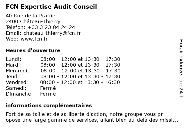 | Lundi | 08:00-12:00 et 13:30-17:30 |