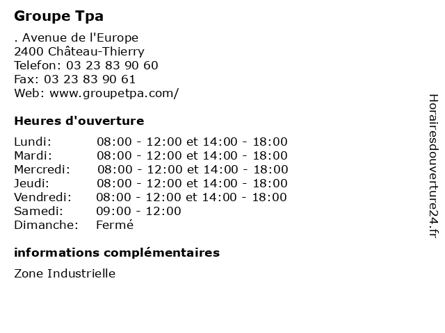 1 Groupe Delisle - Logistique (Distance: 0,33 km) 3 Avenue de l’Europe, 02400 Château-Thierry delisle, entreprises, fret, groupe, logistique, services, transports 2 Cunin & Associés - Groupe Fizalys (Distance: 0,42 km) 1 Avenue de l'Europe, 02400 Château-Thierry associés, audit, cabinet, conseil, cunin, expertise comptable, fiscalité, fizalys, groupe, juridique, paie, social 3 Sanelec - Groupe Sonepar (Distance: 0,49 km) 10 Rue de la Plaine, 02400 Château-Thierry bâtiment, construction, groupe, installations, sanelec, services, sonepar, électricité 4 Groupe Morgan Services (Distance: 0,88 km) 23 Rue Carnot, 02400 Château Thierry agence, emplois, groupe, intérim, morgan, offres, services 5 Groupe Miler (Distance: 1,95 km) 77 Ter Avenue de Château-Thierry, 02400 BRASLES agence, bâtiments, chauffage, groupe, miler, outillage, plombiers, sanitaire 6 Groupe Delisle - SAS DVB (Distance: 17,17 km) 1 Bis route de Château-Thierry, 02210 Breny delisle, dvb, entreprises, fret, groupe, logistique, sas, services, transports |