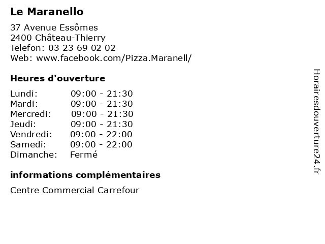 | Samedi | 09:00-22:00 |
