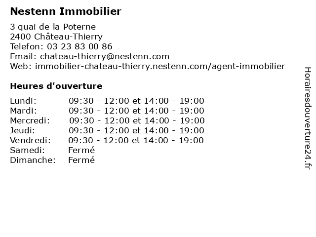 | Lundi | 09:30-12:00 et 14:00-19:00 |