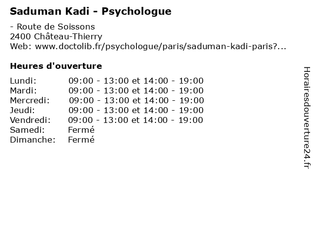 | Lundi | 09:00-13:00 et 14:00-19:00 |
