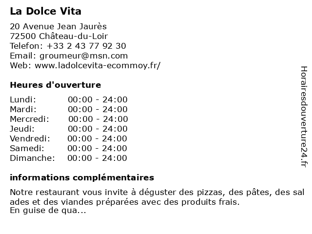 3 Sarl La Dolce Vita (Distance: 0,07 km) 20 Avenue Jean Jaures, 72500 Montval Sur Loir dolce, restaurants, vita 6 |