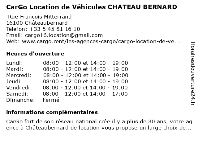 Termes de recherche pour CarGo Location de Véhicules CHATEAU BERNARD:de, chateau, bernard, véhicules, location, cargo |