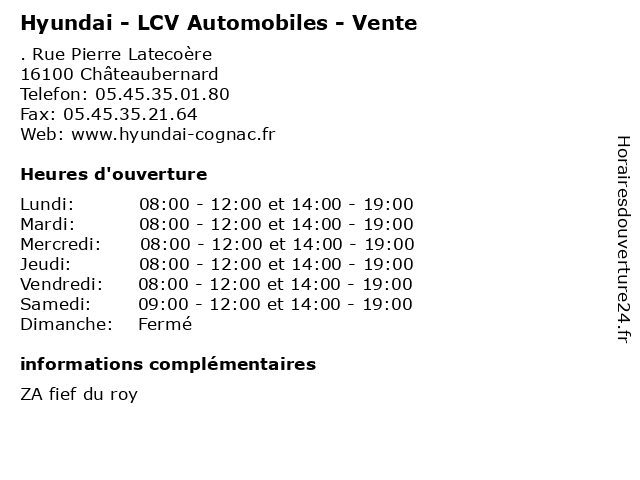 1 Hyundai - LCV Automobiles - Après vente (Distance: 0,00 km) . Rue Pierre Latecoère, 16100 Châteaubernard après, atelier, automobiles, concéssionnaire, garage, hyundai, lcv, motos, vente 2 Hyundai Cognac - LCV Automobiles (Distance: 0,10 km) Rue Pierre Latecoere, 16100 Châteaubernard automobiles, cognac, hyundai, jpo, lcv, portes ouvertes 3 VPN Autos Cognac - Cellier Automobiles (Distance: 0,27 km) 10 Route de Segonzac, 16100 Châteaubernard achat voiture, annonce voiture, automobiles, autos, cellier, cognac, entretien voiture, entretien véhicule, occasion automobile, rachat voiture, réparation voiture, vente de voiture d'occasion, vente de véhicules en ligne, voiture au meilleur prix, vpn 4 Peugeot Clara automobiles (Après vente) (Distance: 0,95 km) 5 Rue Jean-Loup Chrétien, 16100 Châteaubernard après, automobiles, clara, peugeot, services, vente, véhicules 5 Peugeot Clara automobiles (Véhicule neuf/d'occasion) (Distance: 0,95 km) 5 Rue Jean-Loup Chrétien, 16100 Châteaubernard automobiles, clara, neuf/d'occasion, peugeot, services, véhicule, véhicules 6 Emmaüs (Vente) (Distance: 2,23 km) 8 Fonck et Védrines, 16100 Cognac aide, emmaüs, organisation, services, vente |