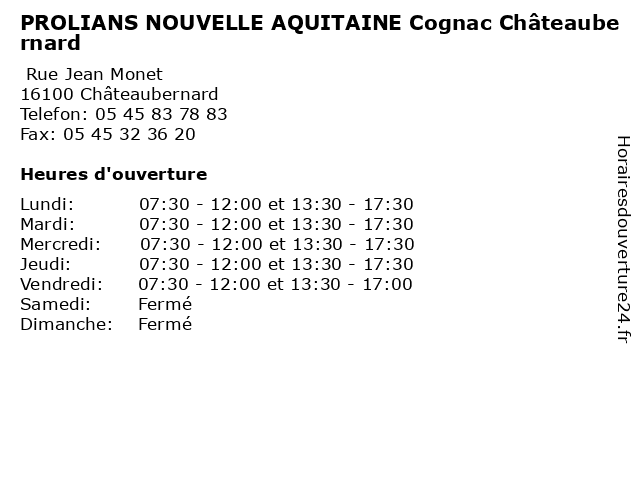 Termes de recherche pour PROLIANS NOUVELLE AQUITAINE Cognac Châteaubernard:cognac, aquitaine, nouvelle, châteaubernard, prolians |