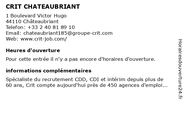 Termes de recherche pour CRIT CHATEAUBRIANT:chateaubriant, crit |