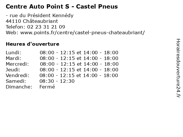 | Mercredi | 08:00-12:15 et 14:00-18:00 |