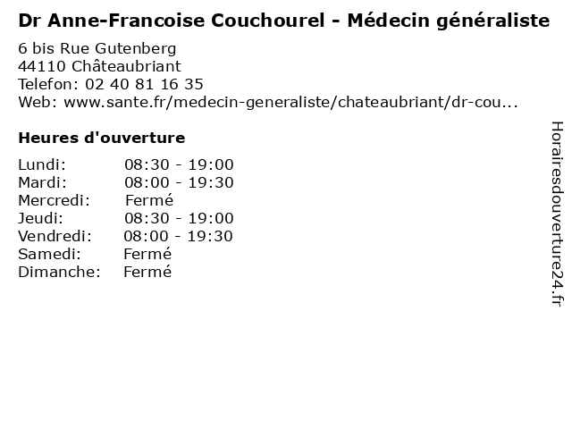 Termes de recherche pour Dr Anne-Francoise Couchourel - Médecin généraliste:anne, soin, medical, francoise, généraliste, docteur, médecin, dr, couchourel |