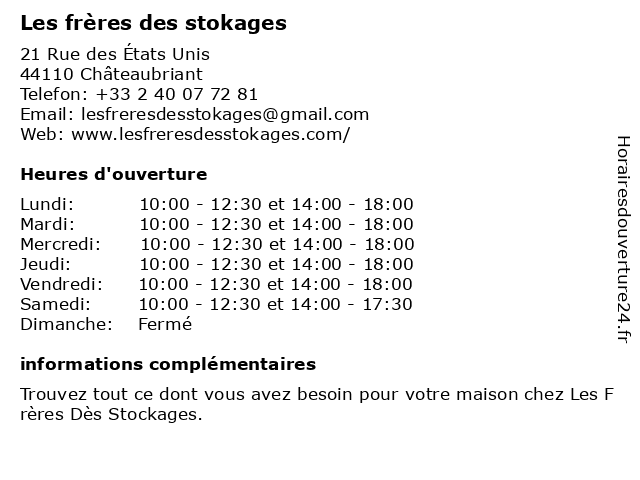 Samedi | 10:00-12:30 et 14:00-17:30 |