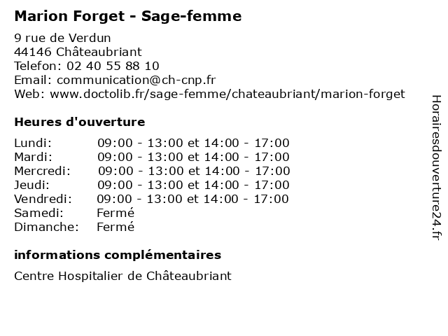 | Mardi | 09:00-13:00 et 14:00-17:00 |