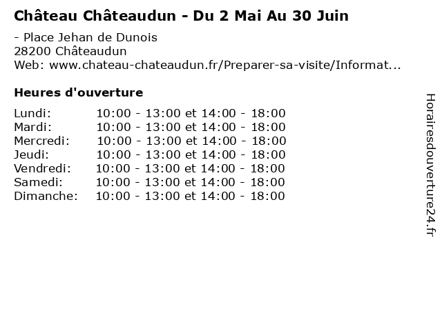 | Dimanche | 10:00-13:00 et 14:00-18:00 |