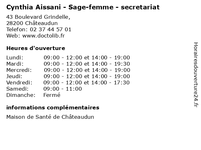 | Mercredi | 09:00-12:00 et 14:00-19:00 |