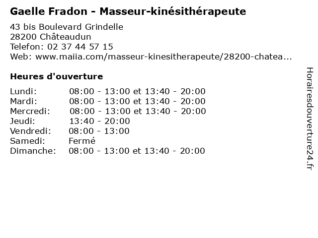 Lundi | 08:00-13:00 et 13:40-20:00 |