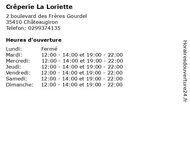 | Mardi | 12:00-14:00 et 19:00-22:00 |