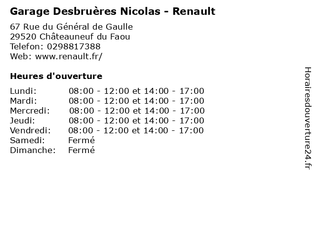 | Lundi | 08:00-12:00 et 14:00-17:00 |
