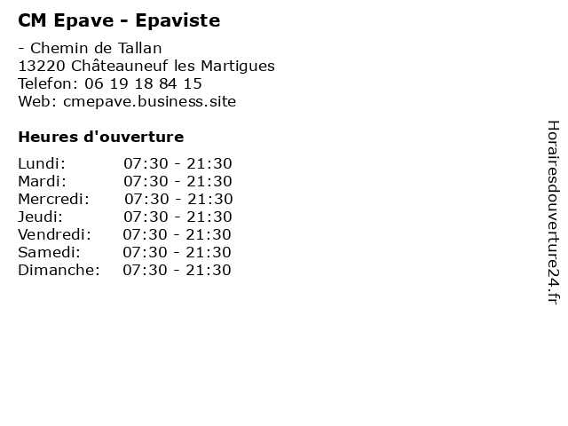 | Samedi | 07:30-21:30 |