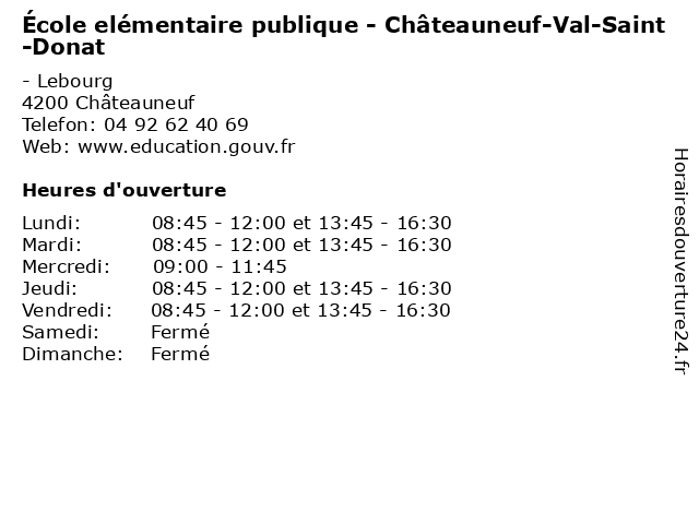Termes de recherche pour École elémentaire publique - Châteauneuf-Val-Saint-Donat:val, saint, chateauneuf, donat, services, ecole, education, maternelle, publique, élèmentaire |