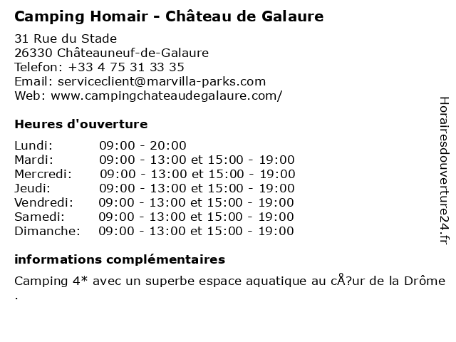 | Mardi | 09:00-13:00 et 15:00-19:00 |