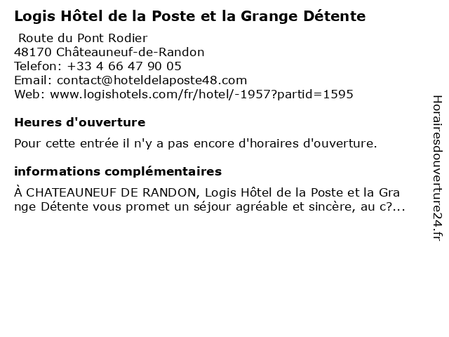 | Appeler Logis Hôtel de la Poste et la Grange Détente | |