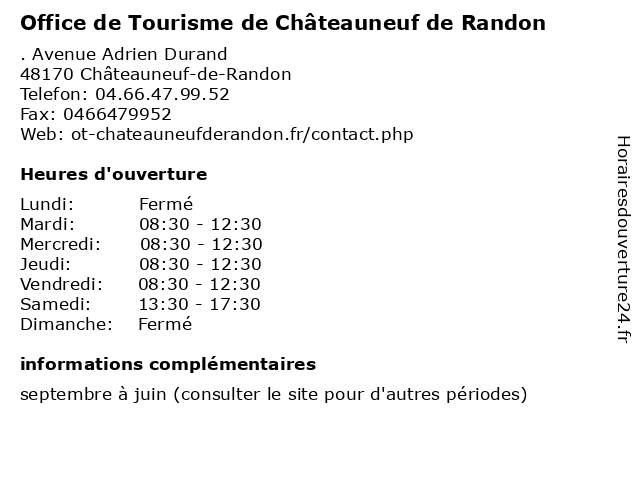 Termes de recherche pour Office de Tourisme de Châteauneuf de Randon:de, chateauneuf, services, office, tourisme, août, bureaux, randon, juill |