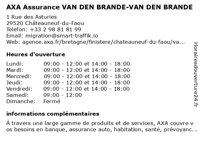 | Mardi | 09:00-12:00 et 14:00-18:00 |