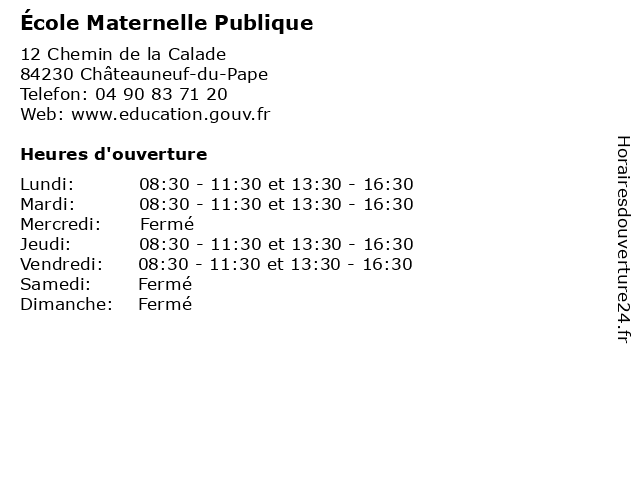 | Mardi | 08:30-11:30 et 13:30-16:30 |