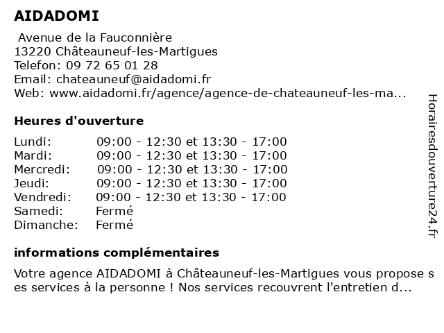 | Lundi | 09:00-12:30 et 13:30-17:00 |