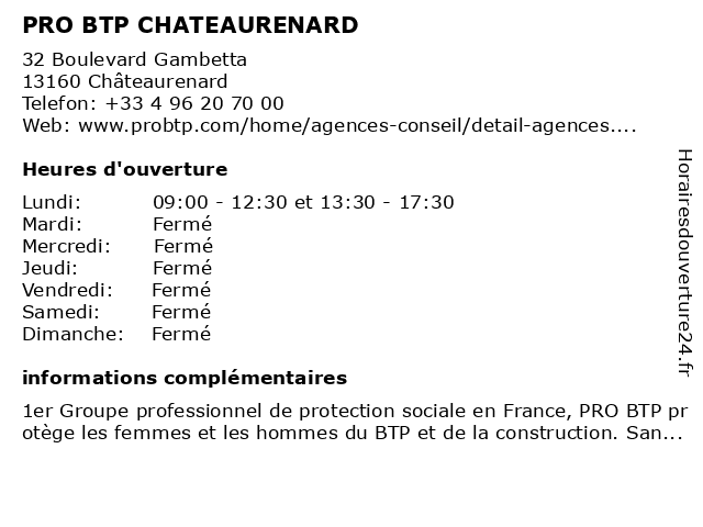 | Lundi | 09:00-12:30 et 13:30-17:30 |