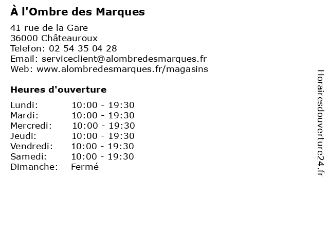 | Samedi | 10:00-19:30 |
