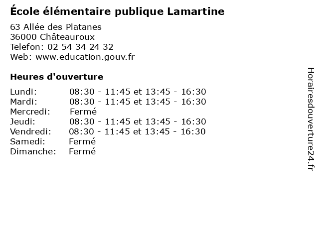 | Mardi | 08:30-11:45 et 13:45-16:30 |