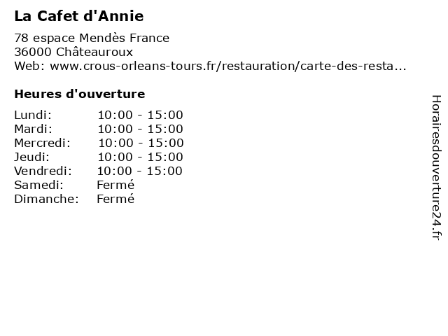| Lundi | 10:00-15:00 |