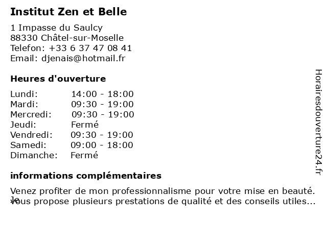 1 Institut Pour Lui Plaire (Distance: 7,52 km) 71 rue d'Alsace, 88150 Thaon-les-Vosges beauté, institut, lui, plaire, pour, relax, spa, épilation 2 Norgil - Institut Capillaire (Distance: 9,67 km) 16 rue Marcel Goulette, 88130 Charmes alopécie, calvitie, capillaire, esthétiques, institut, norgil, solutions, spécialistes 3 Restaurant Le Zen (Distance: 10,30 km) 4 La Voivre, 88130 Charmes bar, bistro, bistrot, brasserie, café, le, restaurant, restauration, zen 4 Ego Zen Vap (Distance: 15,68 km) 35 rue Notre Dame de Lorette, 88000 Epinal boutique, e-cigarettes, ego, liquide, vap, zen, électronique 6 |