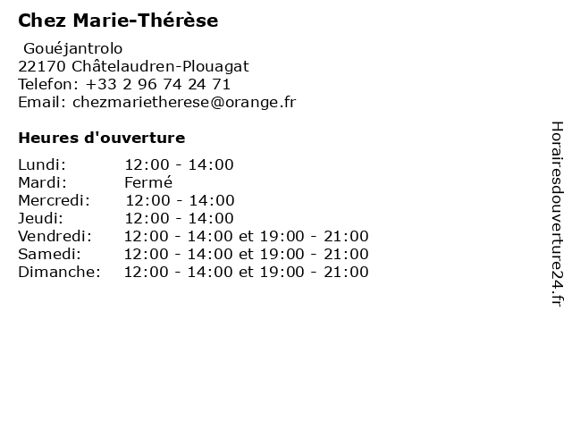 Termes de recherche pour Chez Marie-Thérèse:marie, chez, thérèse |