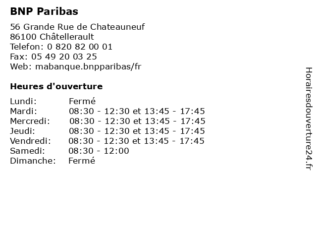 1 BNP Paribas (Distance: 0,63 km) 69 Boulevard Blossac, 86100 Châtellerault banque, bnp, expertises, financement, paribas 2 BNP Paribas (Distance: 28,15 km) 8 Rue de l'Hôtel de ville, 86180 Buxerolles accounts, bank, bnp, credits, insurance, investing, paribas, saving, services 3 BNP Paribas (Distance: 28,66 km) 29 place du Marché, 86300 Chauvigny banques, bnp, commerciales, livret, nationales, paribas, épargne 4 BNP Paribas (Distance: 30,06 km) 4 Rue Henri Oudin, 86000 Poitiers beaute, bnp, cafe, chaussures, enfants, lingerie, mode femmes, mode hommes, paribas, restaurant 5 BNP Paribas (Distance: 30,11 km) n/a Rond-Point du Stade, 86000 Poitiers accounts, bank, bnp, credits, insurance, investing, paribas, saving, services 6 BNP Paribas (Distance: 40,28 km) 65 Rue de la Porte de Chinon, 86200 Loudun accounts, bank, bnp, credits, insurance, investing, paribas, saving, services |