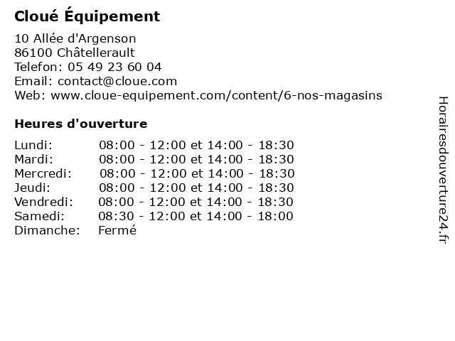 Lundi | 08:00-12:00 et 14:00-18:30 |