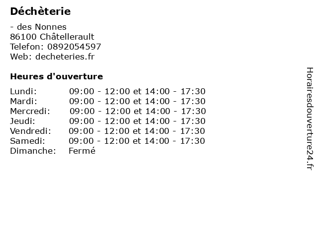 | Samedi | 09:00-12:00 et 14:00-17:30 |
