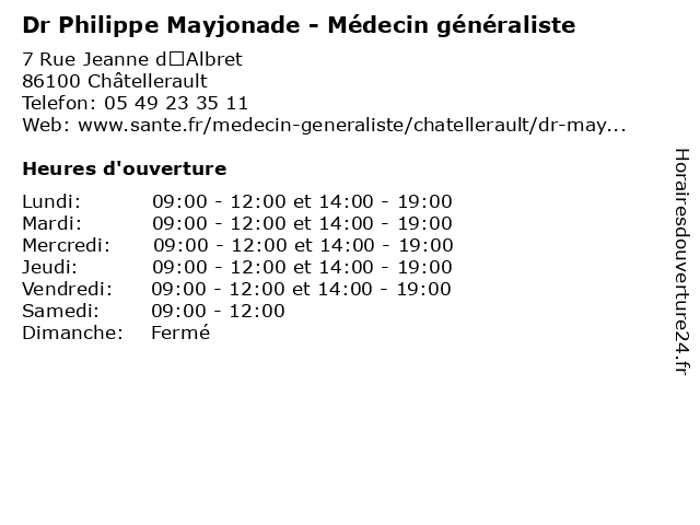 | Lundi | 09:00-12:00 et 14:00-19:00 |